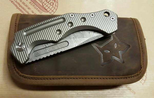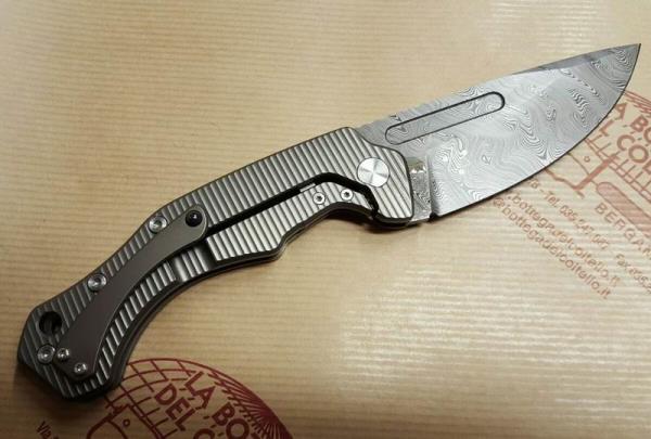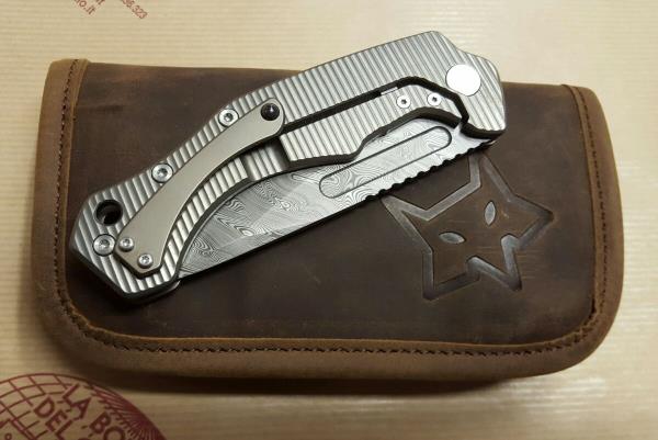 Desert Fox Damascus bronze handle is a folding knife with damascus blade and titanium bronze handle. Boris Manasherov design. OUT OF STOCK