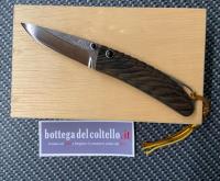 With the collaboration of the Japanese knifemaker Koji Hara, Rockstead proposed the Nehan model 15 years ago, of which the Clad version with damascus of this folding knife is one of the most precious and exclusive executions.The characteristics provided by the manufacturer: registration number NB-WW-D032 clad blade with damascus HRc 67.5Total length open, 145 mm blade 60 mm weight 39 grams wing-wood handle titanium spacers