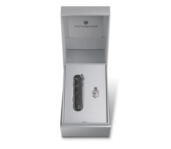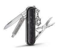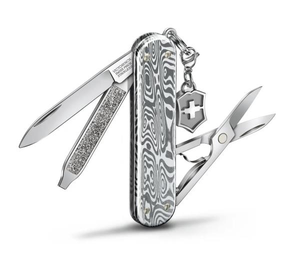 Victorinox Classic Brilliant complete series.the three pieces of the series, Crystal grips, carbon fiber grips and damascus grips.Each piece is made with the best materials and comes in a special gift box.
