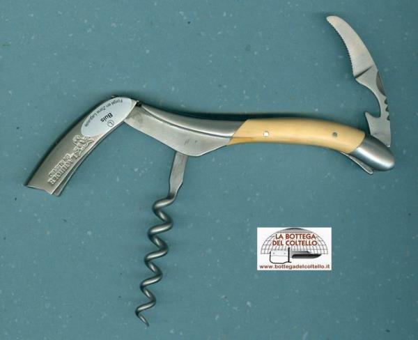A unique and genuine piece, entirely made by a single craftsman from start to finish, this sommelier has been carefully shaped to answer all technical requirements (round section steel, cone-shape spiral, cork-push piece made by founding), but without sacrificing the design (perfect ergonomics, soft and smooth lines). Satin finish metal parts. The handle can have shades and natural streaks different from that reproduced image.