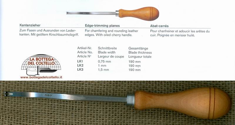 Edge-trimming planes LK2 Pfeil - Tool for chamfering and rounding leather edges. With oiled cherry handle. Total length mm 190, blade width mm 1.