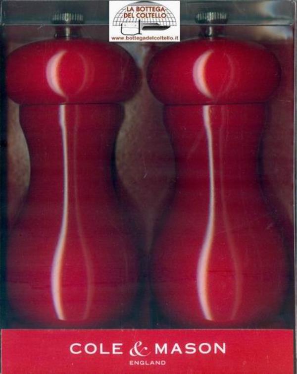 Cole & Mason, Wood table mills gift set: classic wooden mills with a contemporary, lacquered, high gloss bright red finish.