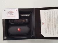 This Black compact multi-purpose Swiss Business Tool SBT 60 is designed to keep paperwork under firm control by cutting, hole punching, and stapling. Also available in grey and red color. Collector's piece. It comes with black zipcase.
