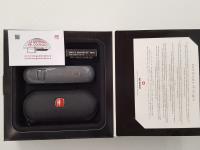 This Grey compact multi-purpose Swiss Business Tool SBT 60 is designed to keep paperwork under firm control by cutting, hole punching, and stapling. Also available in black and red color. Collector's piece. It comes with black zipcase.