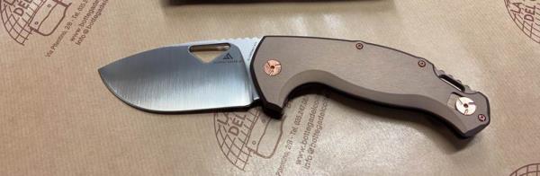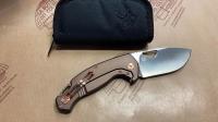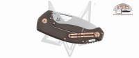 Blade steel: M390 stainless steel - Hardness: HRC 59-61 - Blade Coating: Satin - Handle: 7075 aircraft aluminum brown - Clip: stainless steel copper coating - Screws: stainless steel copper coating - Blade length: 10 cm - 3.94" - Overall length: 22.5 cm - 8.86" - Blade thickness: 4 mm - 0.16" - Weight: 176 gr - 6.21 oz.
