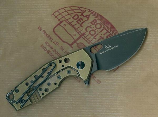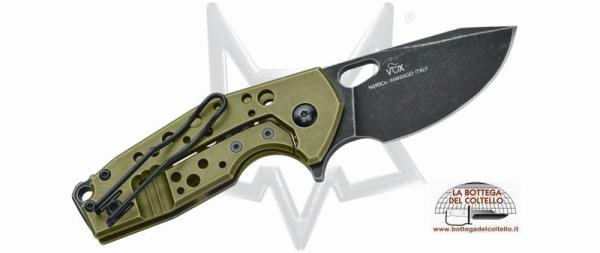 Fox Cutlery Suru Fx-526 Alg folder. Blade. Stainless Steel N690Co Black Idroglider HRC 58-60. Handle: Green Aluminium. Spacer: Aluminium. Wire clip.