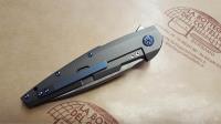 Technical features published by the manufacturer: overall length: 235 mm, 9.25 inches - blade length: 105 mm, 4.13 inches - weight: 130 gr, 4.58 oz - blade material: D2 - HRC 58-61 - blade thickness: 3,5 mm, 0.13 inches - blade finish: satin - mechanism: flipper frame lock - accessories: titanium clip and screws - handle/frame: titanium.