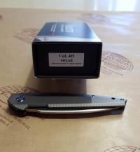 Maserin item 405 Solar folding knife, design by Sergio Consoli. This great knife maker has turned to "technology", not only for materials and design, but by developing a system of blade rotation on ball bearing which is combined to the opening of the blade on a "flipper" system.