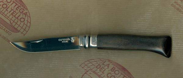 Opinel 8 folding knife, classic line, stainless steel blade, ebony wood from Mozambique handle.