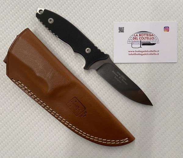 Fantoni fixed blade HB01, G10 Black handle knife, brown leather sheath