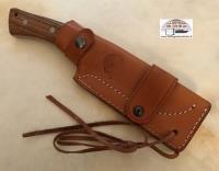 The name GIANGHI, which is the ancient Persian language means "hunter", emphasizes that it has been designed for hunting and for outdoor activities, from camping to hiking. The Gianghi design is simple and clean, as well as comfortable and safe to use, thanks to the recess for the index and the great lower guard. The handle scales are fixed by three pairs of hexagonal screws with a striped head. Drop point. The knife comes with a high quality leather sheath; a lanyard with an automatic button ensures perfect retention.