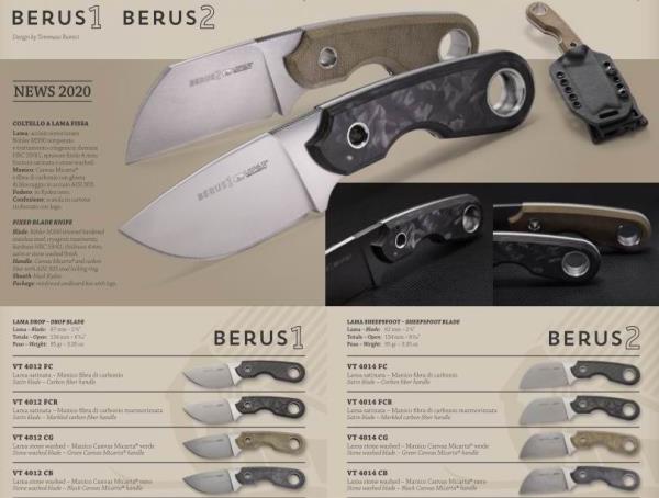 Berus is available with two blades: Drop Point for general use, and a Sheeps Foot, particularly performing when used as a cutter.