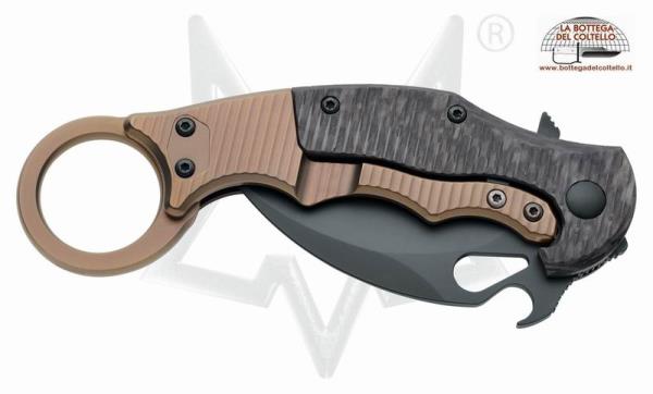 Fox Karambit frame lock folding knife with Carbon fiber handle and Cerakote coating blade.