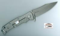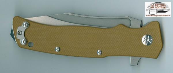Maserin Art. 681/G10M REACTOR folding knife - Description published by the manufacturer: Blade: Steel D2 HRC 58/61 - Blade finishing: Stone washed - Blade length: 110 mm, 4,33" - Total lenght: 245 mm, 9,65" - Mechanism: flipper with ball bearings - Frame: Titanium - Handle: BROWN G10 - Clip: reversible, stainless steel - Window breaker: stainless steel - Weight: 158 gr, 0,54 lbs. Made in Italy. Packaging: black cardboard box.