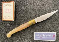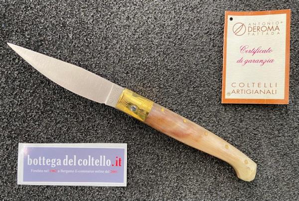 Deroma Resolza, typical Italian folding knife 10 with MA5M steel blade, brass ring and ram's horn handle. Made in Italy.