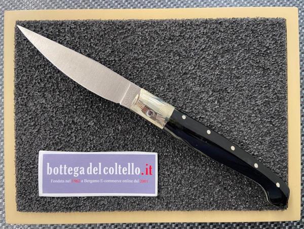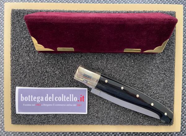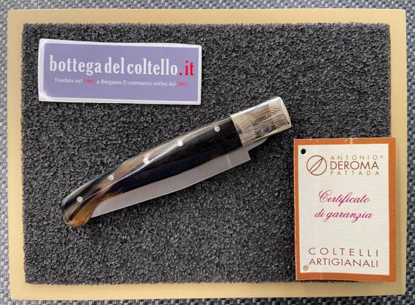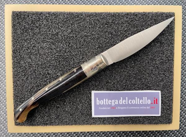 Resolza Pattada, typical Italian folding knife 10 with MA5M steel blade, silver ring and ram's horn handle. Made in Italy.