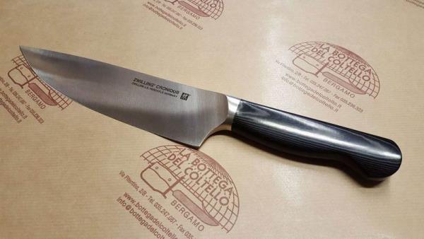 WITH ZWILLING CRONIDUR THOSE WHO DEMAND THE BEST ENGINEERED TOOLS HAVE THE IDEAL CUTTING INSTRUMENT AT HAND. ZWILLING CRONIDUR OPTIMALLY COMBINES FUNCTIONALITY, AESTHETICS AND ERGONOMICS. ITS ELEGANCE IS RADICAL AND PURE. TWO CONTRASTING ELEMENTS ARE VISUALLY FOCUSED: THE BRIGHT STEEL BLADE AND THE BLACK MICARTA HANDLE.