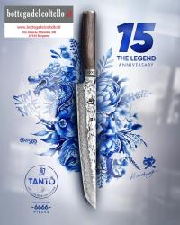 Shun Premier Tim Mälzer Tanto 15 the Legend anniversary. The core of the Shun Premier blade is made of extremely hard VG Max steel and is encased in 32 layers of Damascus steel.