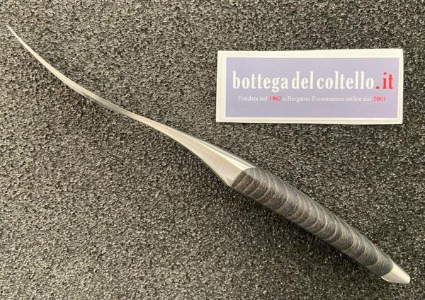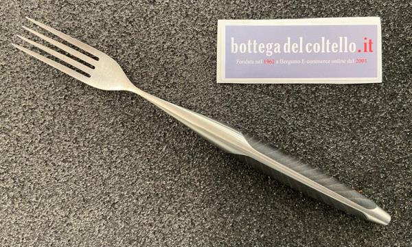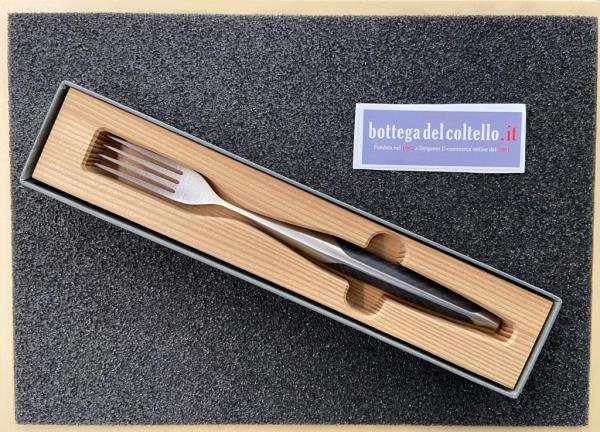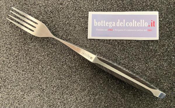La Forchetta da bistecca di Sknife, forchetta realizzata con acciaio chirurgico e guancette in legno di frassino tinto e stabilizzato, prodotto in Svizzera. Lunghezza totale 230 mm. Confezione con 1 pezzo