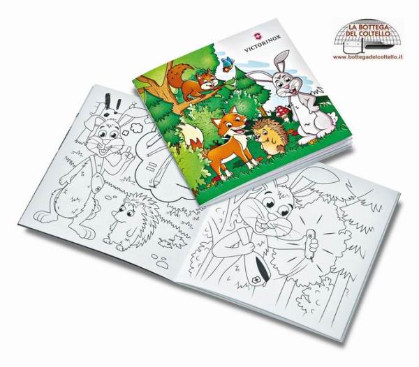La confezione contiene: un multiuso, un cordino da collo e un libricino da colorare. Il multiuso ha la lama con punta arrotondata, seghetto per legno, levacapsule, apriscatole, cacciavite, spelafili, anello portachiavi, pinzetta, stuzzicadenti. Lunghezza chiuso 84mm, peso 45gr. E' raccomandata la presenza di un adulto durante l'utilizzo del multiuso.