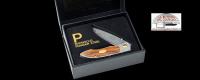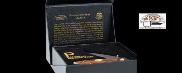 Da quando ero un ragazzo, ho vissuto la vita di outdoorsman e cacciatore. Ho sempre avuto una chiara idea di come sarebbe statoa la mia prima idea di coltello, avendo maturato il disegn e le funzioni nella mia mente. Nel giro di poche ore dal progetto sulla carta del 25 novembre 2001, è nato il coltello pieghevole Modello P e il primo campione è stato venduto il 31 maggio 2002. Da allora, non è cambiato neanche un millimetro! Model P è stato la mia creatura perfetta sin dall'inizio, e ora, festeggiando i 35 anni nel settore internazionale dei coltelli, è un piacere aggiungere qualcosa in più a questo bel coltello pieghevole a chiusura liner lock. Una lama in acciaio a 65 strati, bulloni e medaglioni dorati e infine le guancette in ironwood del deserto rendono questo coltello una vera bellezza. Viziatevi usandolo! Sono stati realizzati solo un migliaio di pezzi di questa edizione limitata.