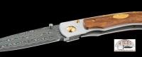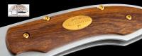 Fallkniven Coltello commemorativo P: lama in damasco, bulloni e medaglioni dorati e manico in ironwood del deserto rendono questo coltello una vera bellezza. FUORI CATALOGO
