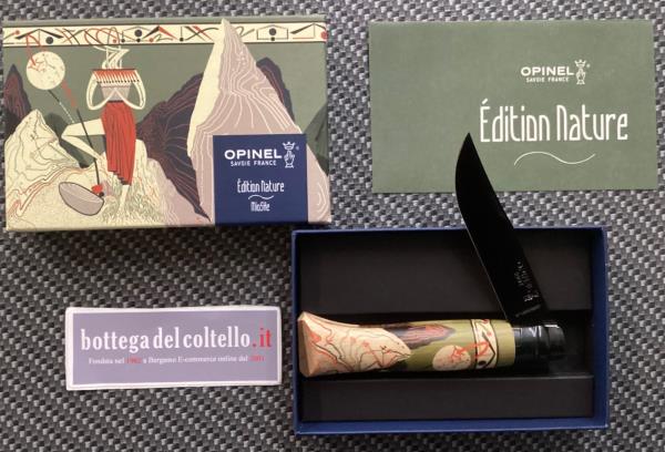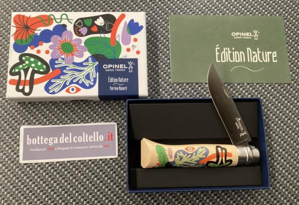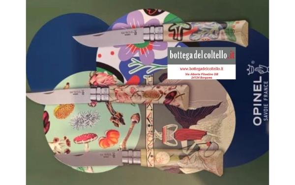 Opinel Nature, la serie completa dei 3 pezzi " Perrine Honoré " " Mioshe " e " Rommy Gonzalez " Questo nuova edizione limitata biennale mette in risalto il lavoro di tre artisti e la loro visione della Natura.