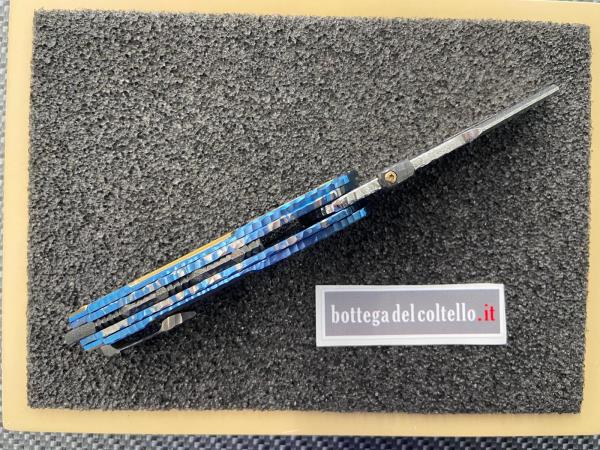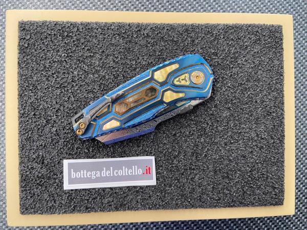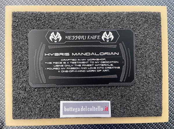 Messori Manuele Hybris folding knife. I coltelli elaborati dal coltellinaio artigiano emiliano Manuele Messori. Questo è il modello Hybris Mandalorian liner lock