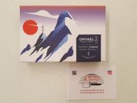 Elévation si ispira alle stampe giapponesi che celebrano i paesaggi e i luoghi sacri. La magnificenza delle maestose cime è immortalata attraverso una grafica minimal dalle linee fluide dai delicati colori sfumati.