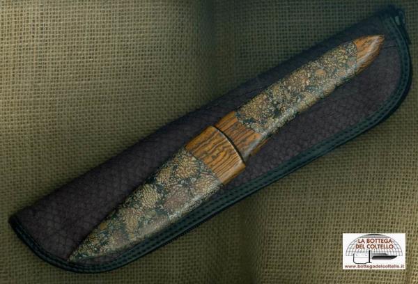 Manico e fodero: cocobolo + resine e inerti (ossidi, noce brasiliana, graniglia di noce)