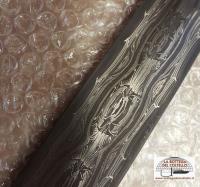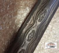Nome: Africa Genesis 21/09/2015. Acciai: w 1.2842 + UDH 15n20 + 1.0603 + Fe puro. Manico: osso ungulato. Guardia: bronzo. Fodero: osso ungulato + resine e inerti (ossido Fe e graniglia di noce). Icone: tagliente damasco explosion con explosion all'interno; corpo: explosion con explosion all'interno; bordura: explosion. Composizione: una bordura definisce sei ovali all'interno dei quali un explosion fitto - rappresentazione del fuoco - racchiude al suo interno un altro explosion; lo stesso nella colonna dei taglienti. Fuoco che genera se stesso. Energia che genera energia positiva. Lunghezza totale mm 435, lama mm 290, peso gr 640 ~ con il coprilama.