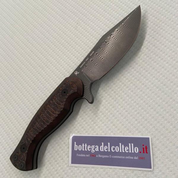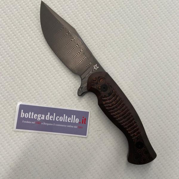 Fox Eastwood tiger damascus serie numerata. Questo modello è stato disegnato da Gudy Van Poppel con l’idea di progettare un coltello tattico che fosse forte ed efficiente e che riuscisse ad evocare linee, caratteristiche e materiali classici.