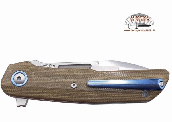 Coltello chiudibile Clap micarta verde disegnato da Bob Terzuola, prodotto in Italia dal Consorzio MKM.