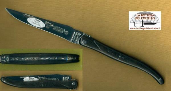 Il coltello Laguiole è nato nel 1829 a Laguiole, piccolo paesino di montagna situato in Aveyron (nel sud ovest della Francia) come modesto coltello da contadino. Questo modello ha la lama in acciaio inossidabile 12C27 finitura lucida e l'impugnatura in legno d'ebano. Dimensioni: ~ lunghezza totale mm 220, lama mm 100, chiuso mm 120. L'impugnatura può avere striature naturali diverse da quelle riprodotte nell'immagine.