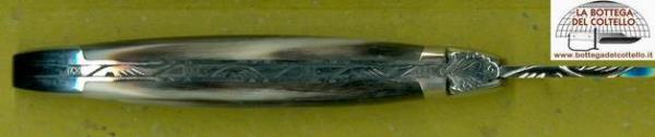 Coltello pieghevole Laguiole en Aubrac Foglia d'acanto 12. Lama in acciaio inossidabile 12C27 finitura lucida; impugnatura in corno.