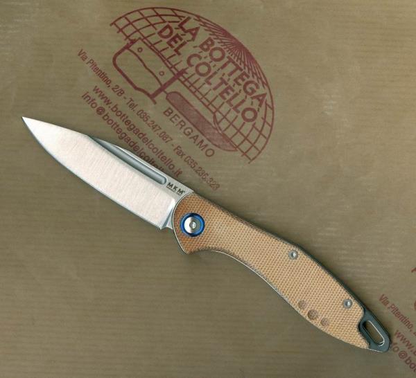 Coltello chiudibile MKM Fara, con guancette in canvas micarta natural, Made in Italy by MKM - Maniago Knife Makers.