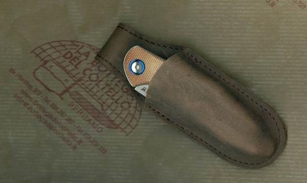 CARATTERISTICHE TECNICHE: Lunghezza lama: 76 mm, 2,99" - Lunghezza totale: 180 mm, 7,09"- Spessore lama: 2,5 mm, 0,10" - Lama: BOHLER M390, satin, 58-60HRC - Sistema di apertura: due mani, nail groove - Sistema di bloccaggio: slip joint - Viti e molla: acciaio inossidabile - Peso: 76g, 2.68oz - Impugnatura: micarta naturale - Fodero in pelle con magnete - Confezione: scatola di cartoncino.