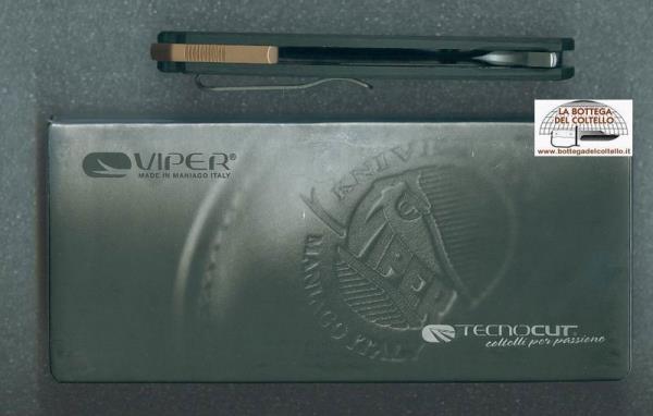 Viper Tecnocut Maniago Art. V5980FC COLTELLO CHIUDIBILE Il meccanismo di rotazione è dato da cuscinetti reggispinta, e si può aprire con il doppio piolo per il pollice, oppure con il rapidissimo flipper. I bordi piatti e la clip in titanio permettono un porto comodo e discreto. Design by Jesper Voxnaes.