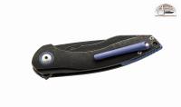 Lama: acciaio BOHLER M390 stonewash nero. HRC 58-60. Manico: titanio Gr. 5 Ti6AI4V stonewash nero. Clip: solida in titanio anodizzato blu. Distanziale: titanio Gr. 5 Ti6AI4V anodizzato blu. Blocco lama: liner lock. Sistema di apertura: flipper con cuscinetti a sfera. Dimensioni: Lunghezza lama 68mm - Spessore lama 3.5mm - Lunghezza totale: 182mm. Imballo: astuccio sintetico con zip e passacintura