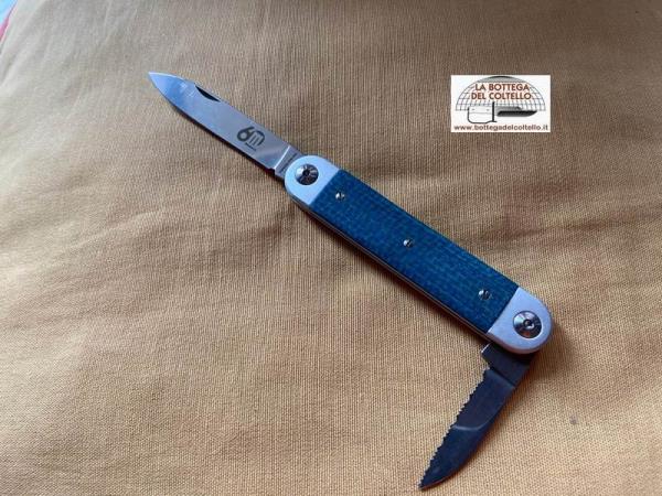 Maserin, Coltellerie in Maniago dal 1960 - Art. 195/MCB - Coltello da tasca dotato di una lama principale e una più piccola seghettata, il coltello è molto leggero e pratico da portare con il suo fodero EDC. Lama: Acciaio AISI 420, HRC 56, 60 mm. Impugnatura in micarta BLU. Mostrine in alluminio anodizzato. Lunghezza totale aperto: 195 mm. Peso: 38 gr. Confezione: scatola di cartoncino.
