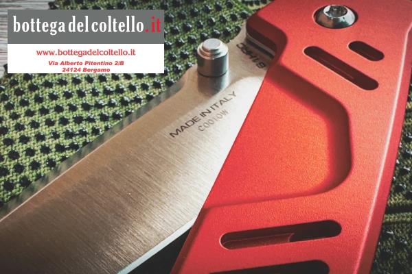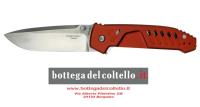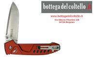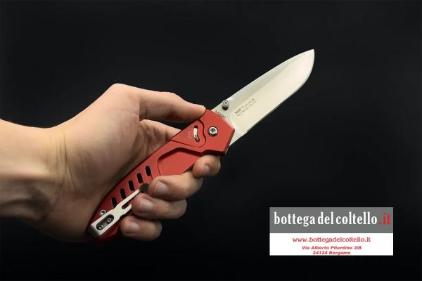 MF1 EVO D RED SATIN M390: con manico in colorazione Red e lama Drop satinata in acciaio Böhler M390 (61 HRC)
