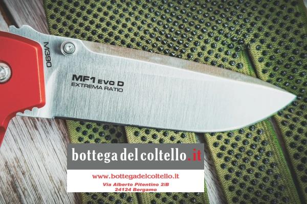 MF1 EVO D BLACK, MF1 EVO D TACTICAL GREY e MF1 EVO SP TACTICAL MUD utilizzano il Böhler N690, indurito a 58 HRC per il miglior equilibrio tra tenuta del filo e robustezza, tipologia di acciaio utilizzato da Extrema Ratio per la maggior parte dei propri coltelli.