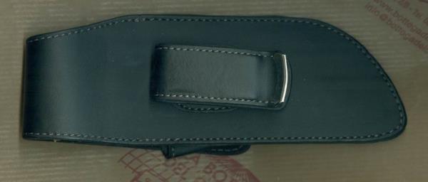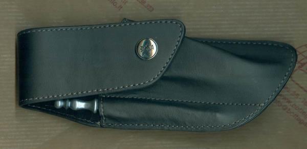 Fodero Opinel, in cuoio nero, con clip rotante e piccolo acciaino. Misura 9/10.