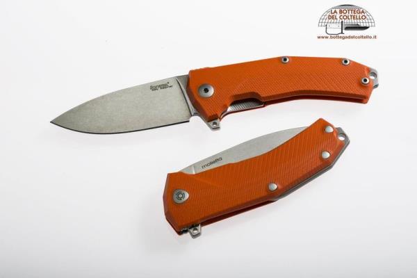 KUR Coltello chiudibile G10 arancio è un liner lock con flipper. Lama in acciaio Sleipner, liner in acciaio. Distanziale in titanio. Ball bearings. Prodotto da LionSteel di Maniago, Pordenone.