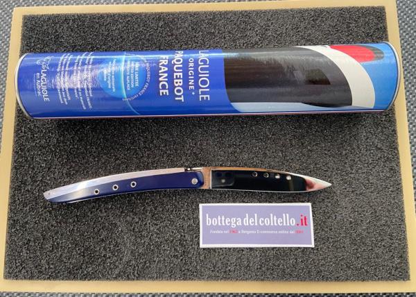 Laguiole en Aubrac origine Paquebot Couteau pliant Marine n° 1192 Originale coltello pieghevole con impugnatura in corian blu e alluminio.