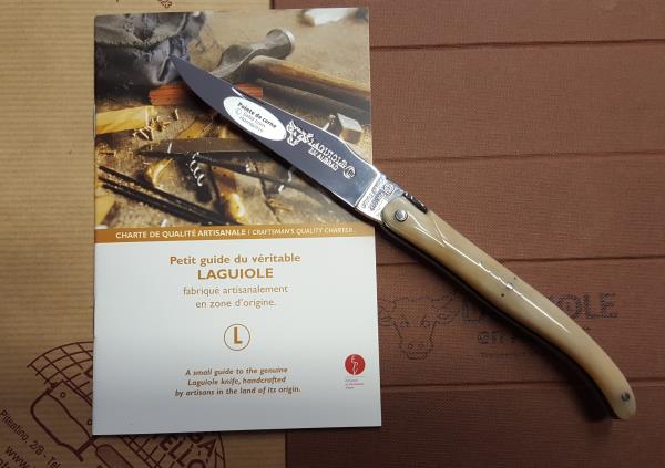 Laguiole en Aubrac Coltello chiudibile corno 20. Esecuzione artigianale del famoso coltello regionale francese Laguiole. Acciaio inossidabile 12C27.
