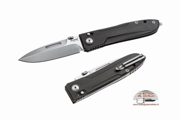 Versione: Nero - Lama satinata Lunghezza totale: 218 mm. - 8.58 in. Lunghezza lama: 94 mm. - 3.70 in. Spessore lama: 3.5 mm. - 0.14 in. Peso netto: 128 gr. - 4.52 oz. Manico: titanio Acciaio lama: D2 Imballo: Scatola in cartone.