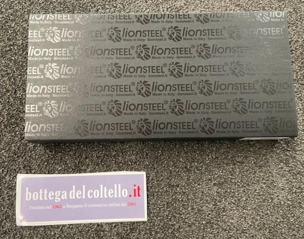 L'impugnatura Solid frame-lock, già caratteristica distintiva di lionSTEEL, è fresata da un solido pezzo di alluminio Ergal disponibile nei colori nero, rosso, verde o marrone terra, mentre la lama è realizzata in acciaio CPM MagnaCut