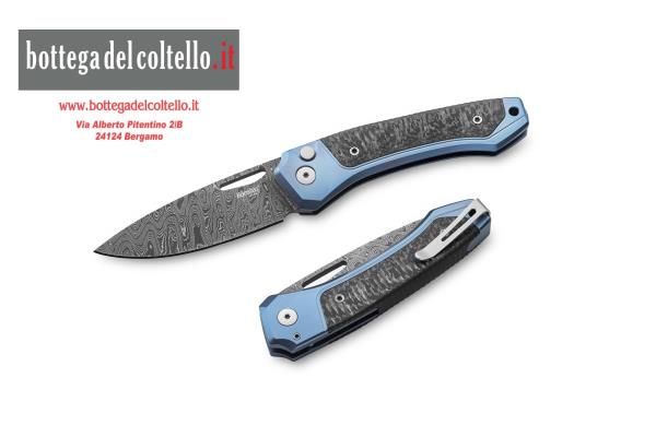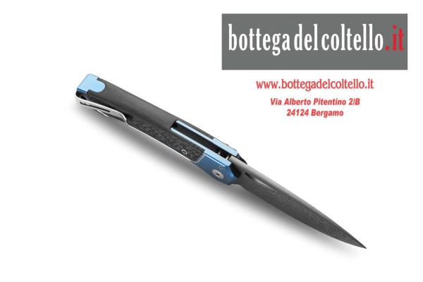 Lionsteel Twain Damasco Titanio Blue. Questo è il coltello che ha rappresentato lionSTEEL nel concorso Manufacturing Quality Award al Blade Show Atlanta 2024, è stato un progetto impegnativo da realizzare.