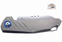 Specifiche pubblicate dal produttore: Lunghezza totale: 166 mm - 6.54" - Lunghezza lama: 71 mm - 2.80" - Spessore lama: 2.5 mm - 0.10" - Peso: 84 gr - 2.96 oz - Acciaio lama: Bohler M390 - Durezza acciaio lama: HRC 58/60 - Finitura lama: Satinata - Sistema di apertura: Finger Hole - Sistema di blocco: Slipjoint - Materiale manico: Titanio Gr.5 Ti6AI4V - Fodero: Fodero in pelle - Designer: Jens Anso - Produttore: MKM.